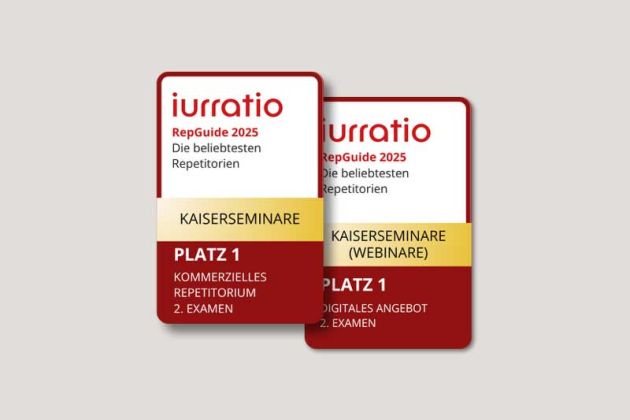 Der RepGuide 2025 (Download PDF bei iurratio.de), ein IRRUATIO-Ratgeber für das Referendariat und den Berufseinstieg, führt uns in seiner auf Seite 11 in zwei Umfragen unter Referendaren und jungen Volljuristen auf dem 1. Platz der Repetitorien. Zum einen bei den digitalen Lernmitteln für Referendare, zum anderen bei der generellen Beliebtheit der Repetitorien für das Assessorexamen. Demnach "entscheiden sich bundesweit die meisten für Kaiserseminare, um sich auf ihr zweites Staatsexamen vorzubereiten".
